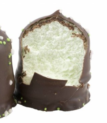 - Schuimmassa: suiker, water, eiwit, invertsuikersiroop, stabilisator agar agar, mint aroma, Kleurstof E 100 E 131