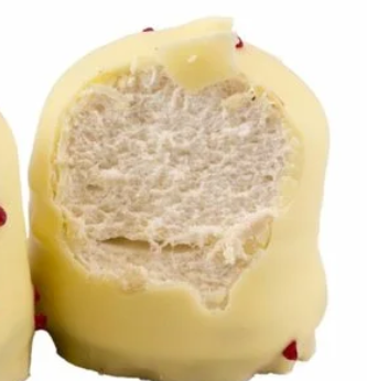 - Schuimmassa: suiker, water, eiwit, invertsuikersiroop, stabilisator agar agar,aardbei aroma, kleurstof E120